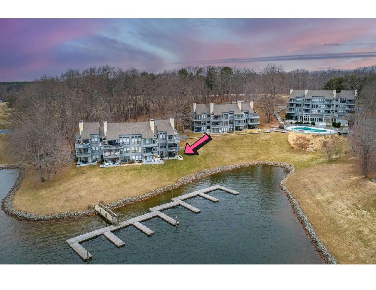 UNEQUIVOCALLY SPECIAL. Location. Ambiance. Walk-Out. End-Unit. It is different from the rest! From the impressive stone facade of the fireplace to the earthy tone of the tile flooring, you will instantly be enveloped with the sense of a rustic lake getaway - in a condo! Details you never knew that matter: cars park parallel to this unit (no headlights flood your bedroom), the exterior HVAC units do not spoil your approach or enjoyment outdoors, end units have more windows, there is flat land right off the deck with plenty of room for grilling and lying in the grass, also just steps from the water with access to a community use boat dock, AND the way this one looks out from its cozy tucked away cove over the water as it widens and off to the mountains in the distance, is simply magic!