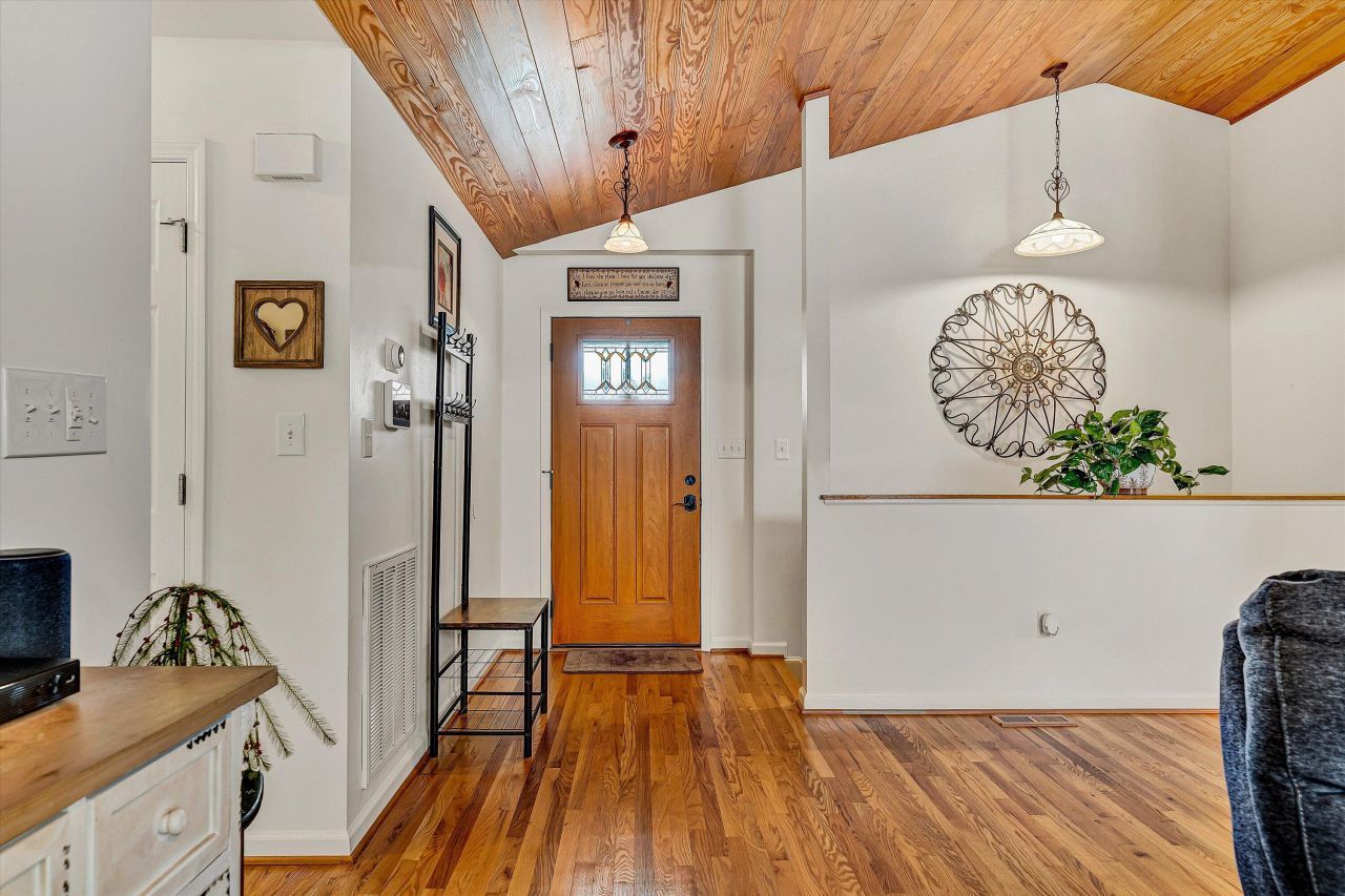 Step through the front door and be immediately captivated by the warmth and character of custom plank ceilings that soar above the expansive great room, kitchen and dining area, setting the tone for this stunning home. Rich hardwood floors flow throughout most of the home, offering timeless elegance and charm. The kitchen is both stylish and functional, featuring granite countertops, a spacious Butler's pantry, a breakfast bar, a spacious dining area and beautiful lighting that enhances the heart of the home. The large primary bedroom and bath is a true retreat with a walk in shower and a skylight that fills the space with natural light. With three spacious bedrooms and three full baths, this home offers flexibility for family, guests or home office needs. The lower level family room