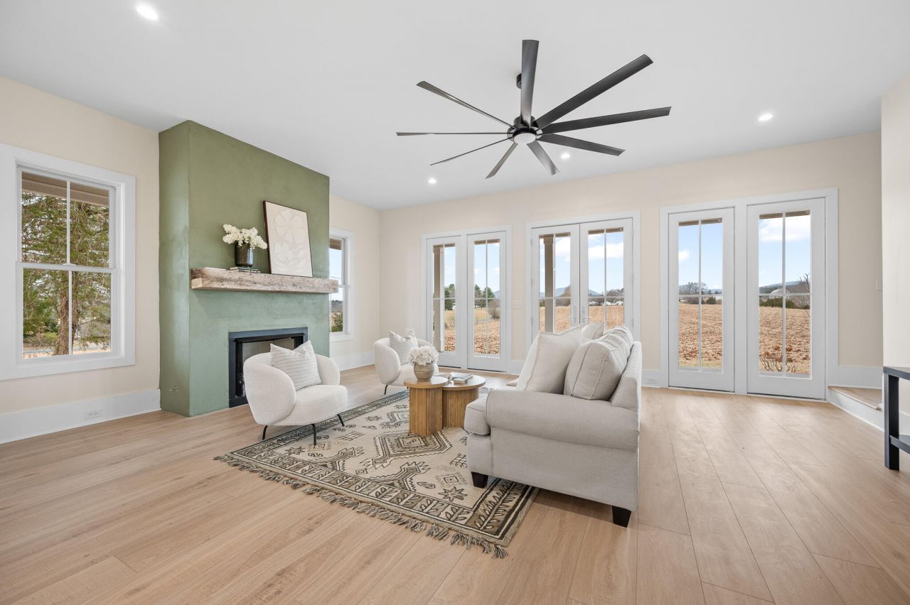 Welcome home to this beautifully crafted 3-bedroom, 2.5-bath retreat that blends timeless farmhouse charm with modern comfort. A welcoming wraparound porch sets the tone, perfect for morning coffee or evening sunsets overlooking peaceful countryside and Peaks of Otter views. Inside, light-filled open living spaces feature wide-plank floors, designer lighting, and a cozy fireplace that anchors the heart of the home. The kitchen offers custom cabinetry, a large island, stainless appliances, and thoughtful details ideal for everyday living and entertaining. Spacious bedrooms provide comfort and privacy, while the serene primary suite offers a relaxing escape. Set on an acre lot, it delivers the perfect balance of style, warmth, and tranquility ready for you to settle in and make it your own.