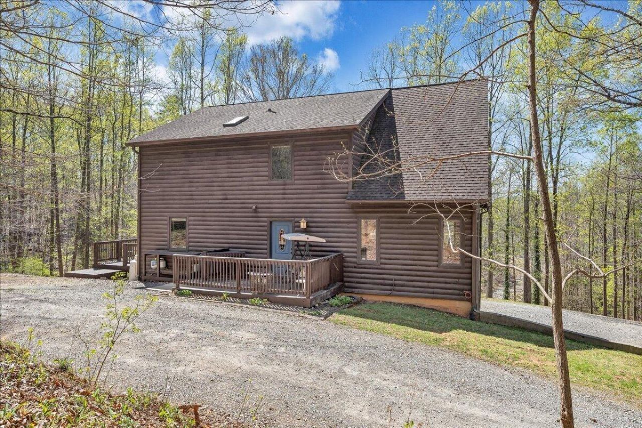 Tucked away at the end of a quiet lane, this private chalet-style retreat offers over 10 acres of peaceful countryside with rare water features including a stocked pond and Pigg River frontage. The home features over 3,600 finished square feet across three levels with 4 bedrooms and 3 full baths. Inside, you'll find a dramatic great room with soaring beamed ceilings and fireplace, a spacious kitchen with abundant cabinetry and island, and a flexible lower level with additional living space, office, and bedrooms. Outdoor living is just as impressive with a wraparound deck, multiple patios, and serene natural views in every direction. A true escape that still keeps you just minutes from town.