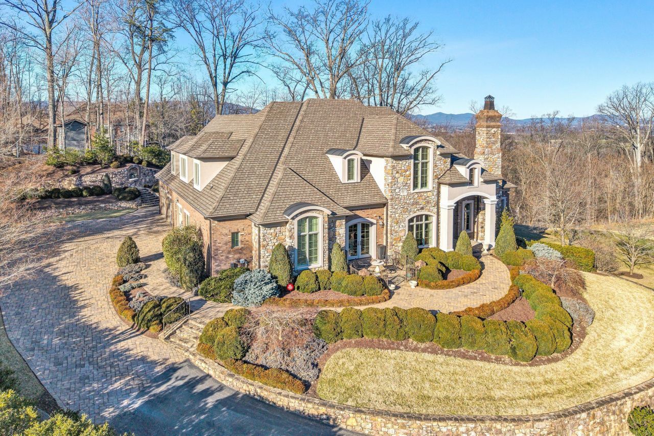 IMMACULATE custom French Provincial estate showcasing sweeping Mountain and City vistas. Exceptional SW Roanoke County home offers refined one level living with soaring ceilings. Min 10 feet high throughout the main level with dramatic 14-foot coffered ceiling anchoring the elegant Great Room showcasing stunning Marble Italian Mantle. Main floor Primary Bedroom Suite features barrel ceiling, bay window and 12' tall ceilings. Primary bath features extensive custom cabinetry, heated tile floors, seamless glass enclosed shower, beautiful Copper free-standing Tub. Separate Walk-in Closets with custom millwork adjoin Bath. Study with gas/woodburning fireplace and beautiful Italian Marble Mantle. Dining Room with Roundtop window bathes the house with light.